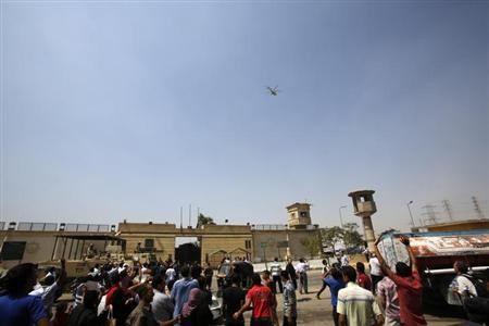 The 85-year-old autocrat was taken in a blue-and-white helicopter from Tora prison in Cairo, as hundreds of supporters stood outside the jail for his house arrest. But officials told Reuters that he was first flown to an up-scale hospital in southern suburb of Maadi.
