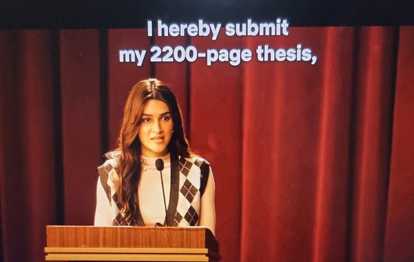 The scene is of Kriti playing the role of Mukti Beniwal, a psychology research scholar from Delhi university. Needless to say, the scene looked as abrupt as it sounded. And soon, social media was quick to crack jokes, memes and even school the makers.