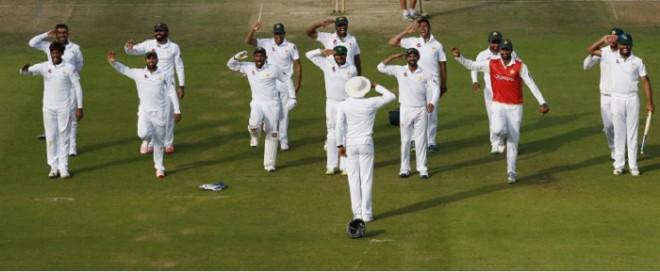 After Pakistan's 75-run win over England, Younis Khan organised the troops. The Pakistani players stood in line and did press-ups. They paid tribute to the army boot camp they had attended ahead of the Test series in Pakistan.